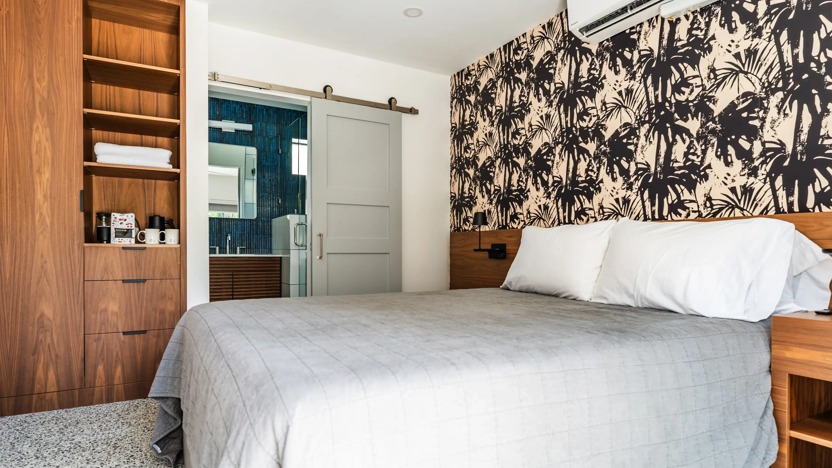 Enjoy a large walk-in shower, Smart TV / WIFI, a comfortable (and luxurious) King-sized bed, Climate Control, in-suite amenities, and more.